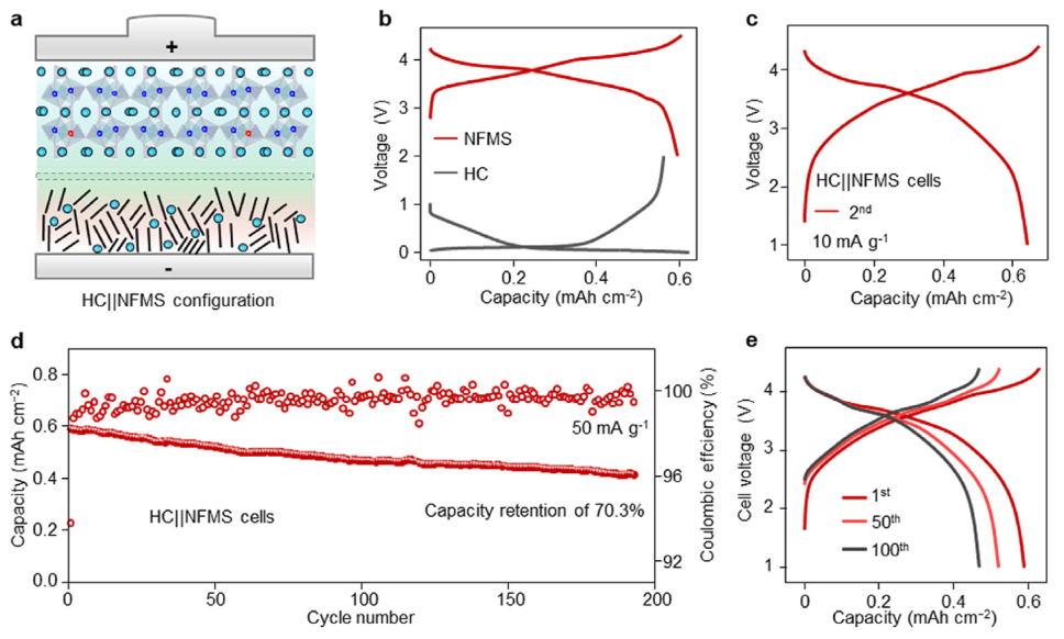 在全电池测试中,该材料展现出优异的实际应用性能:经过190次完整充放电循环后,仍能保持初始容量的70.3%,平均库仑效率高达99.5%。这一突破性成果不仅验证了镁掺杂磷酸铁基硫酸盐正极材料的稳定性,更标志着钠离子电池在商业化应用道路上迈出了关键一步,为大规模储能系统的开发提供了可靠的技术支撑。